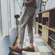 春夏日系纯色鹿皮绒修身文艺范男士新款小脚裤青少年休闲长裤