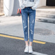 2017新款朵睿破洞牛仔裤女春夏季韩版高腰显瘦小脚学生百搭九分裤