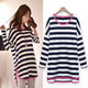 大码女装胖mm春秋装纯棉T恤女长袖宽松大款体恤条纹中长款上衣潮