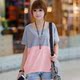 2016新款大码女装拼接显瘦胖MM夏装韩版百搭蝙蝠衫宽松T恤女短袖
