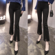 2017春夏新款韩版高腰弹力微喇叭九分裤蕾丝拼接开叉阔腿打底裤女