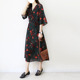 复古碎花连衣裙长裙女装V领套头七分袖碎花裙大摆裙2017春夏新款