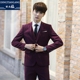 顶天狼西服套装男士伴郎新郎结婚礼服三件套休闲修身小西装紫红色