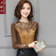 蕾丝衫女2017春秋款大码女装上衣韩版修身显瘦网纱小衫长袖打底衫