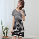 朗美雅夏季长t恤女中长款修身条纹短袖圆领学生学院风体恤