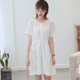 朗美雅文艺小清新连衣裙宽松短袖圆领胸前口学生学院风裙子