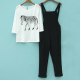 春夏新款 韩范休闲七分袖斑马图案T恤 背带裤女裤两件套哈伦裤女