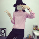 春夏新款 韩范清新条纹显瘦棉麻立领衬衫 打底修身百搭衬衣女学生