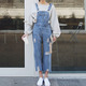 现货TT韩国代购2017春季新款荙宽松磨破洞九分牛仔背带裤pt64247