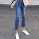 现货TT韩国代购2016夏季新款翋破洞九分牛仔铅笔裤女pt52624