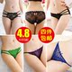 4条装内裤女 性感女内裤透明蕾丝诱惑黑色系低腰三角女内裤纯棉档