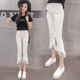 2017春夏季韩版显瘦黑色九分裤毛边破洞弹力打底裤女七分微喇叭裤