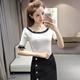 2017春夏新款韩版套头t恤女一字领木耳边修身短袖内搭针织打底衫