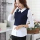 假两件上衣女长袖打底衬衫春装韩版娃娃领拼接修身显瘦套头衬衣寸