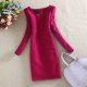 大码女装2017秋冬韩版名媛气质修身显瘦中长款一步打底毛呢连衣裙