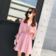 ZC 2017定制新款韩版v领镂空蕾丝拼接雪纺连衣裙女夏显瘦a字裙