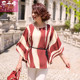 乐卡索中年女装蝙蝠袖雪纺衫夏装系腰带显瘦上衣中老年t恤妈妈装