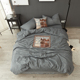简约性冷淡暗黑风格纯棉水洗棉床上用品猫咪贴布绣四件套送抱枕套