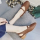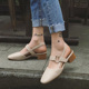 2017新款韩版百搭单鞋粗跟复古方头杏色交叉绑带春天时尚女鞋子潮