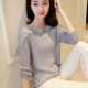 春装钉珠蕾丝袖镂空针织衫外套女上衣花边领宽松套头针织打底衫女