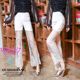 2017春欧美风 黑白拼色撞色包臀修身喇叭裤长裤 竖条纹长裤女