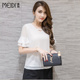 雪纺衫女短袖2017韩版夏装新款宽松高腰上衣打底衫胖mm绣花小衫