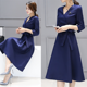 2017春装新款女装V领韩版修身名媛七分袖中长款显瘦气质连衣裙女