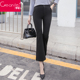 2017春夏韩版新款高腰微喇裤女修身九分裤西裤开叉喇叭裤休闲裤