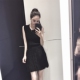 荷叶边连衣裙中长款无袖背心裙露肩小黑裙子女夏 季学生a型夏天