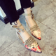 小辣椒铆钉凉鞋女一字扣带高跟鞋尖头粗跟百搭浅口凉鞋漆皮中空鞋
