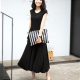 夏气质淑女长裙宽松舒适收腰小黑裙子人造棉心机连衣裙法式少女