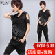 夏季网纱短袖露肩t恤破洞个性哈伦裤小脚裤洗水牛仔七分裤套装女