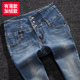 高腰牛仔裤女春夏季2017新款排扣弹力修身显瘦韩版学生小脚长裤子