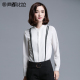 尚都比拉长袖雪纺衫春装2017雪纺上衣OL显瘦女士白色拼接衬衫宽松