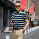 中老年男士短袖t恤爸爸装翻领半袖男装条纹T恤衫