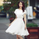歌兔夏季雪纺连衣裙2016新款韩版修身中长款裙子荷叶边女气质中裙
