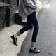 时尚起义韩国代购爆款九分裤高弹显瘦卷腿翻边长款牛仔裤女683401
