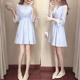 2017春款连衣裙春秋短袖拼接百褶裙女夏韩版夏季裙子小清新女装