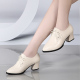 2017春新款欧美真皮尖头单鞋女细跟包头中空浅口中跟凉鞋女工作鞋