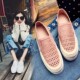 米惟2017夏季女鞋真皮网眼平底乐福鞋松糕鞋一脚蹬懒人鞋休闲女鞋