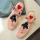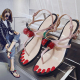 米惟mivi2017夏新款草莓珍珠跟低跟凉鞋真皮女鞋水钻33大小码41红