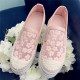 米惟2017春夏新款韩版内增高女鞋透气弹力布网纱粉色跑步鞋运动鞋