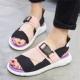 米惟2017夏新款真皮休闲凉鞋魔术贴厚底松糕跟露趾室外沙滩鞋女鞋