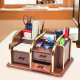 金隆兴抽屉时尚创意笔筒多功能收纳木制笔筒桌面遥控器收纳办公笔