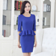 春夏职业连衣裙ol短袖美容师工作服假两件套裙珠宝店服装修身大码