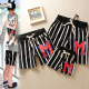 新款童装大裤衩情侣短裤一家三口亲子装竖条纹M字母纯棉短裤
