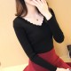 秋冬新款韩版贴钻百搭修身螺纹V领蕾丝拼接套头打底针织衫长袖女