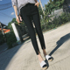 春秋新款黑色打底裤女外穿薄款前开叉九分裤高腰紧身小脚铅笔裤
