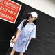 小y定制韩版短袖t恤女中长款上衣学生宽松百搭个性时尚绑带连衣裙