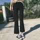 韩版高腰黑色外穿九分喇叭打底裤女弹力显瘦毛边微喇9分裤女春款